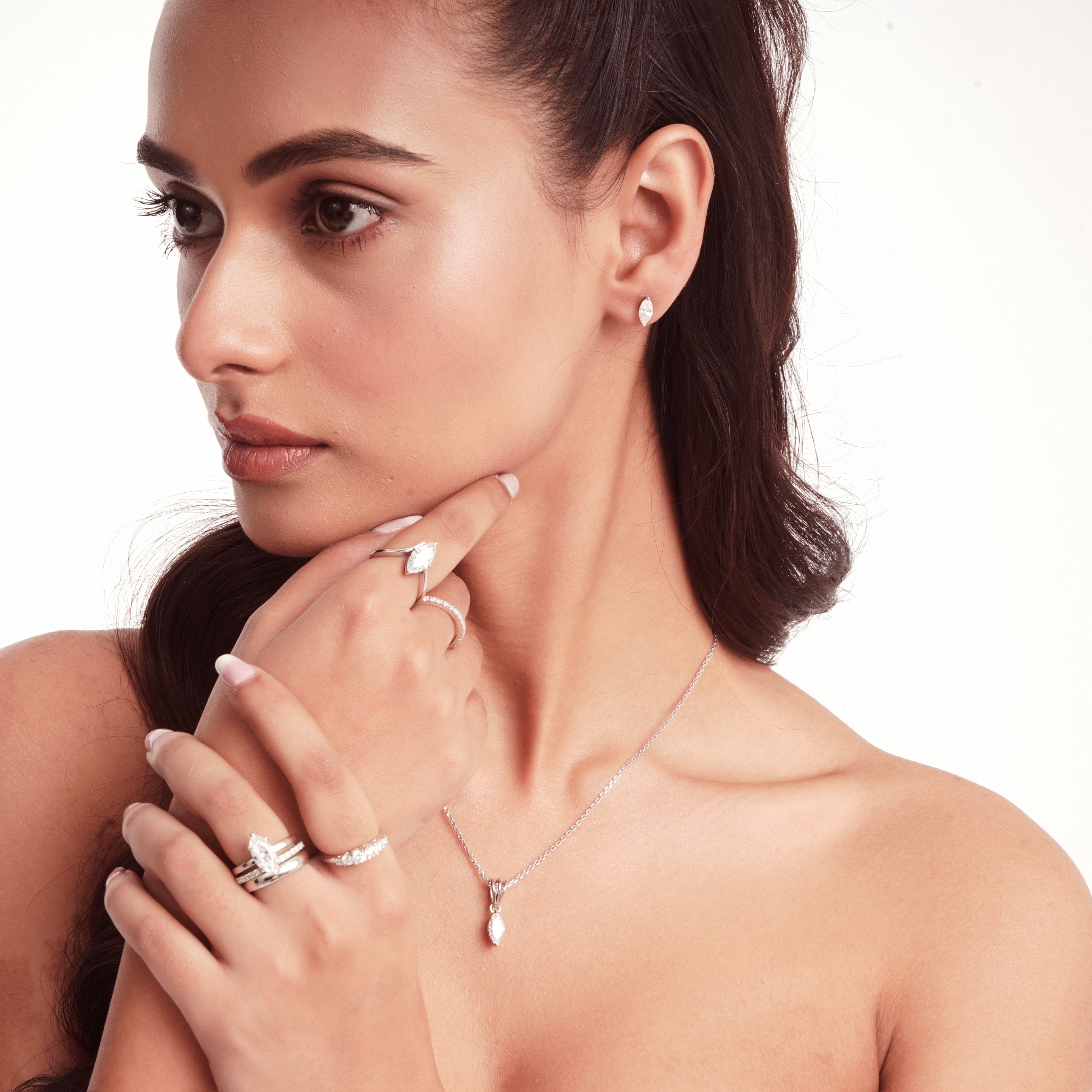 This east-west marquise ring puts a fresh spin on a classic cut, cradled horizontally and wrapped in smooth, sculpted silver like a precious little burrito. The sleek silver encasing gently hugs the gem, blending modern minimalism with a cozy, unexpected charm.