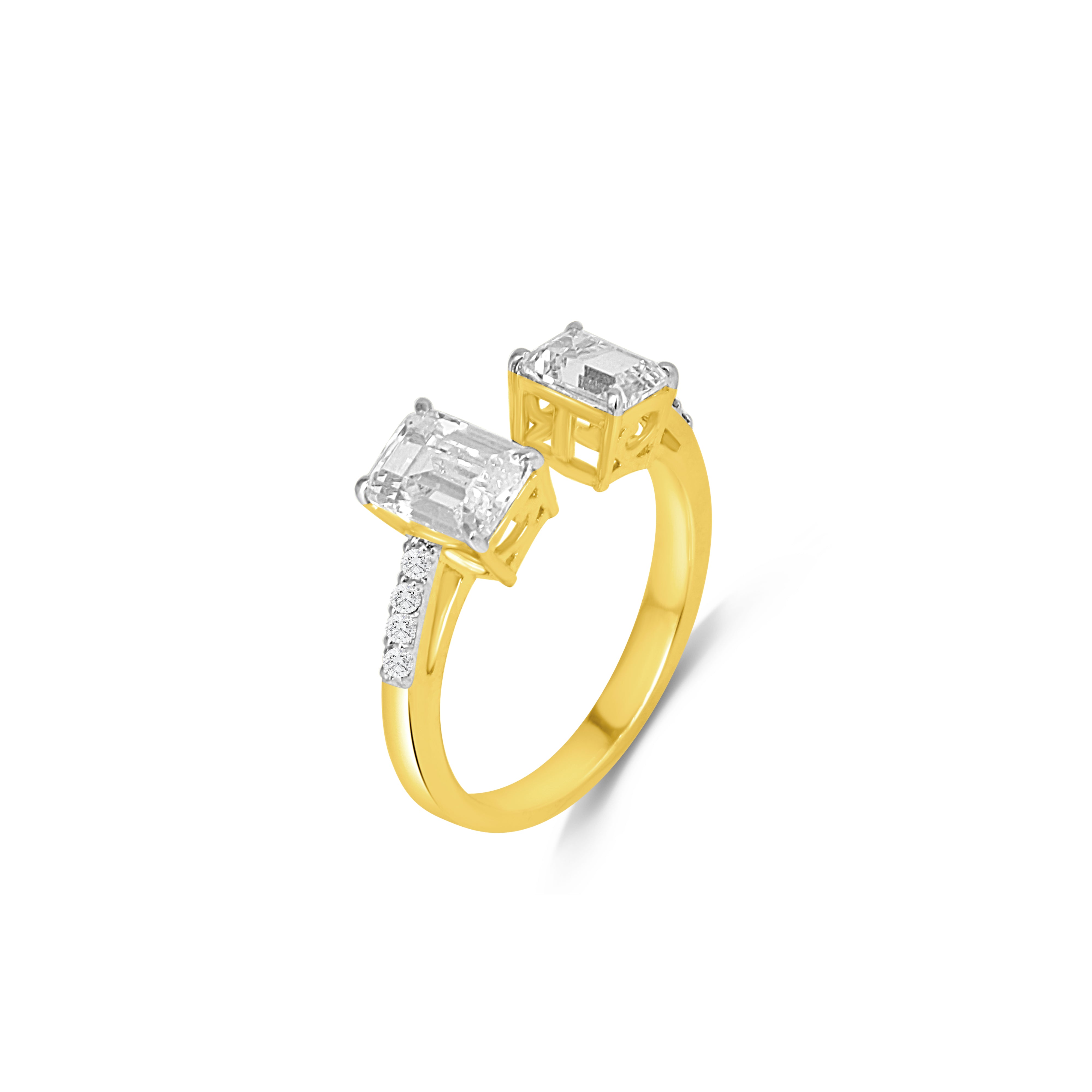 Emerald Pave Toi et Moi Ring