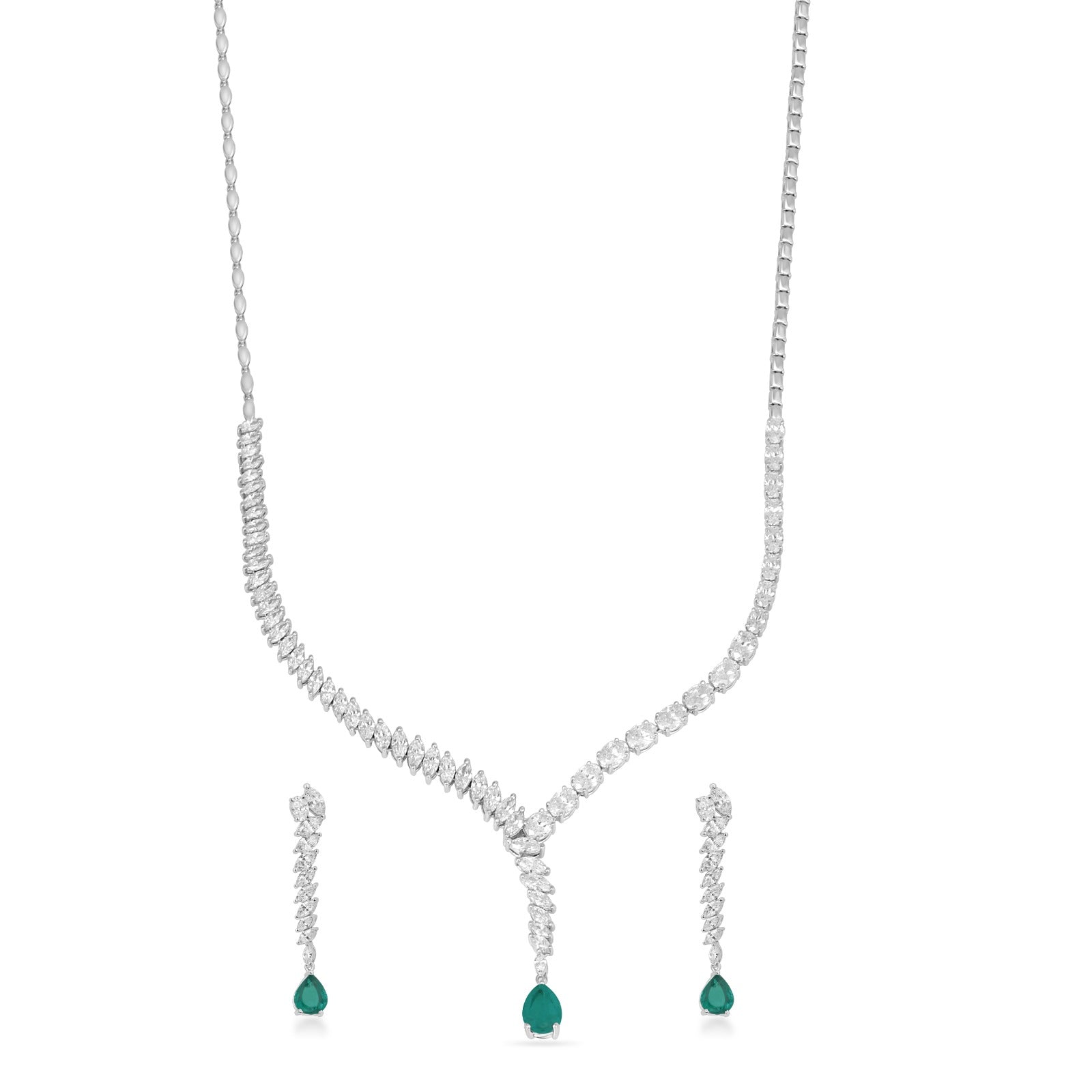 Add a touch of elegance with our Olive Crystal Necklace Set. Featuring stunning emerald stones, this luxurious set will make you stand out in any crowd.