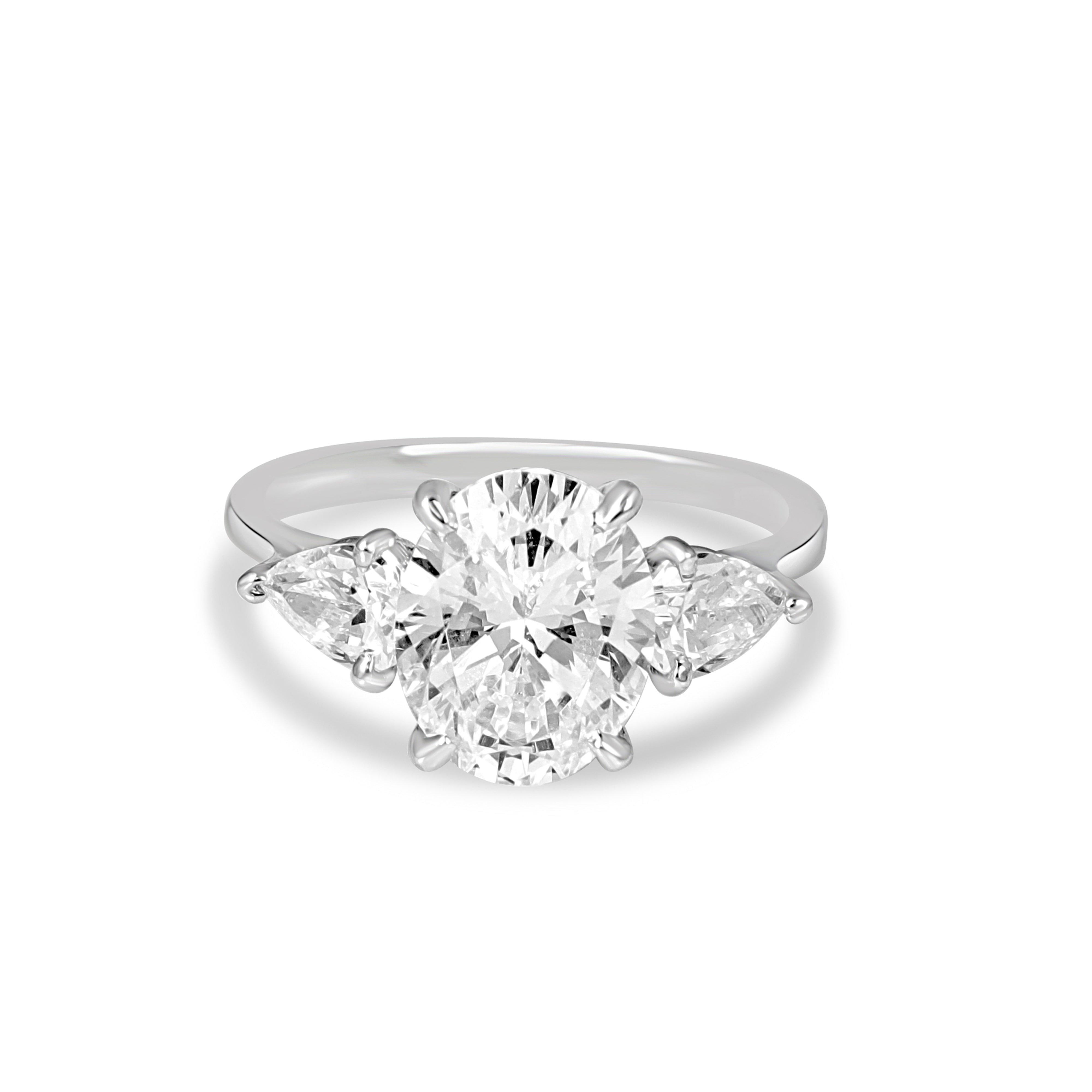 This Oval with Pear Accent Ring features a stunning and popular design that is truly eye-catching. Add a touch of elegance and sophistication to any outfit with this beautiful ring.
