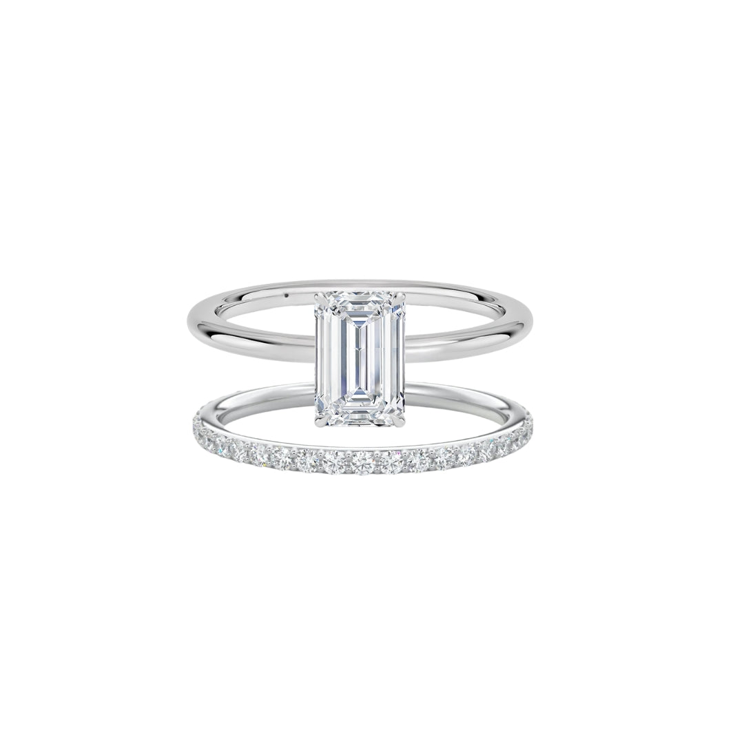 The Emerald Cut & Half Eternity Ring Stack (2 Rings)