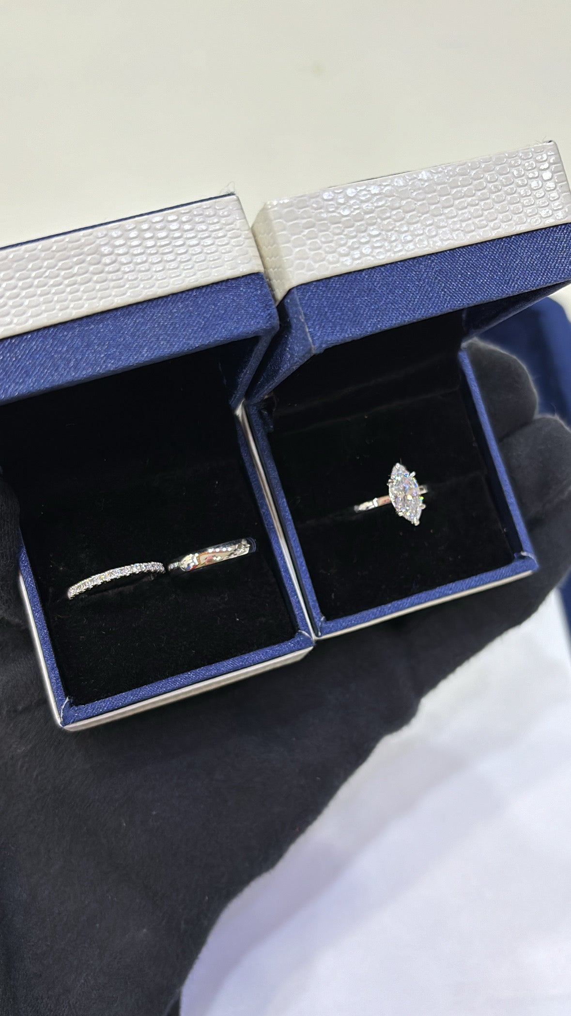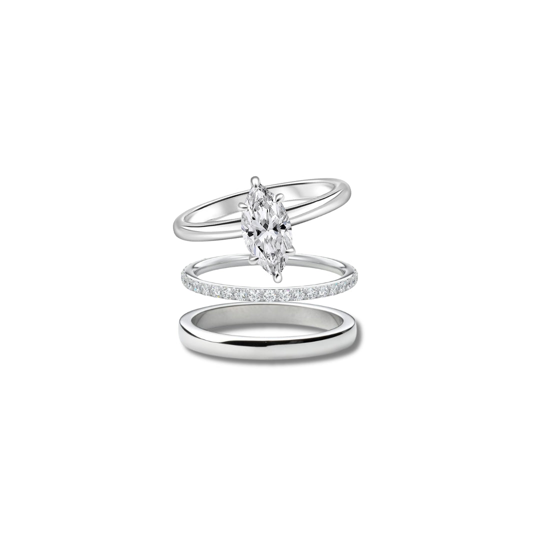 The Essential Marquise Ring Stack brings together a solitaire marquise ring, a sleek band, and a sparkling half eternity ring for the ultimate layered look. Mix and match these versatile pieces for endless styling possibilities, creating a chic, personalized stack that’s as unique as you are.