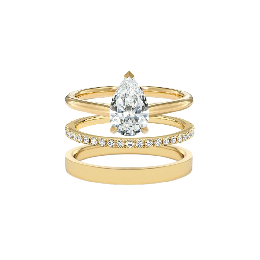 The Essential Pear Ring Stack (3 Rings)pairs a stunning Pear-cut stone with a sparkling half eternity & band ring for a beautiful and elegant look. Perfect for stacking or wearing solo. Own the prettiest design EVER and make a statement withThe Essential Pear Ring Stack (3 Rings)
