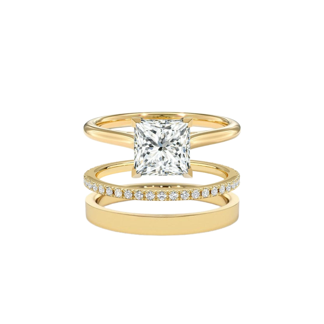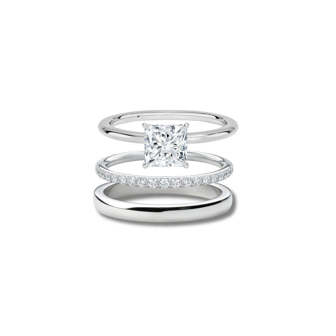 The Essential Princess Ring Stack (3 Rings)  pairs a stunning Princess-cut stone with a sparkling half eternity & band ring for an elegant look. Perfect for stacking or wearing solo. Own the prettiest design EVER and make a statement with The Essential Princess Ring Stack.