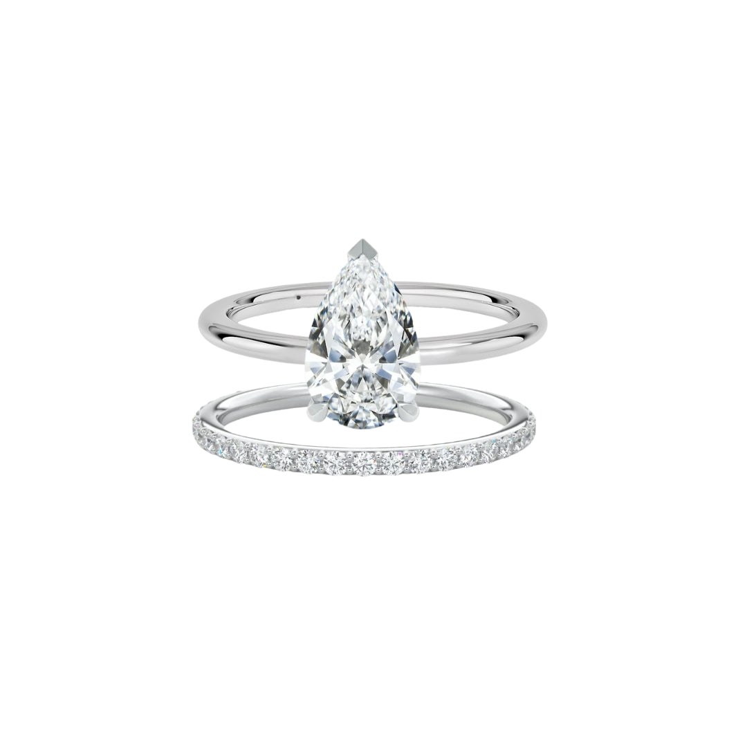 The Pear Solitaire & Half Eternity Ring Stack (2 Rings)