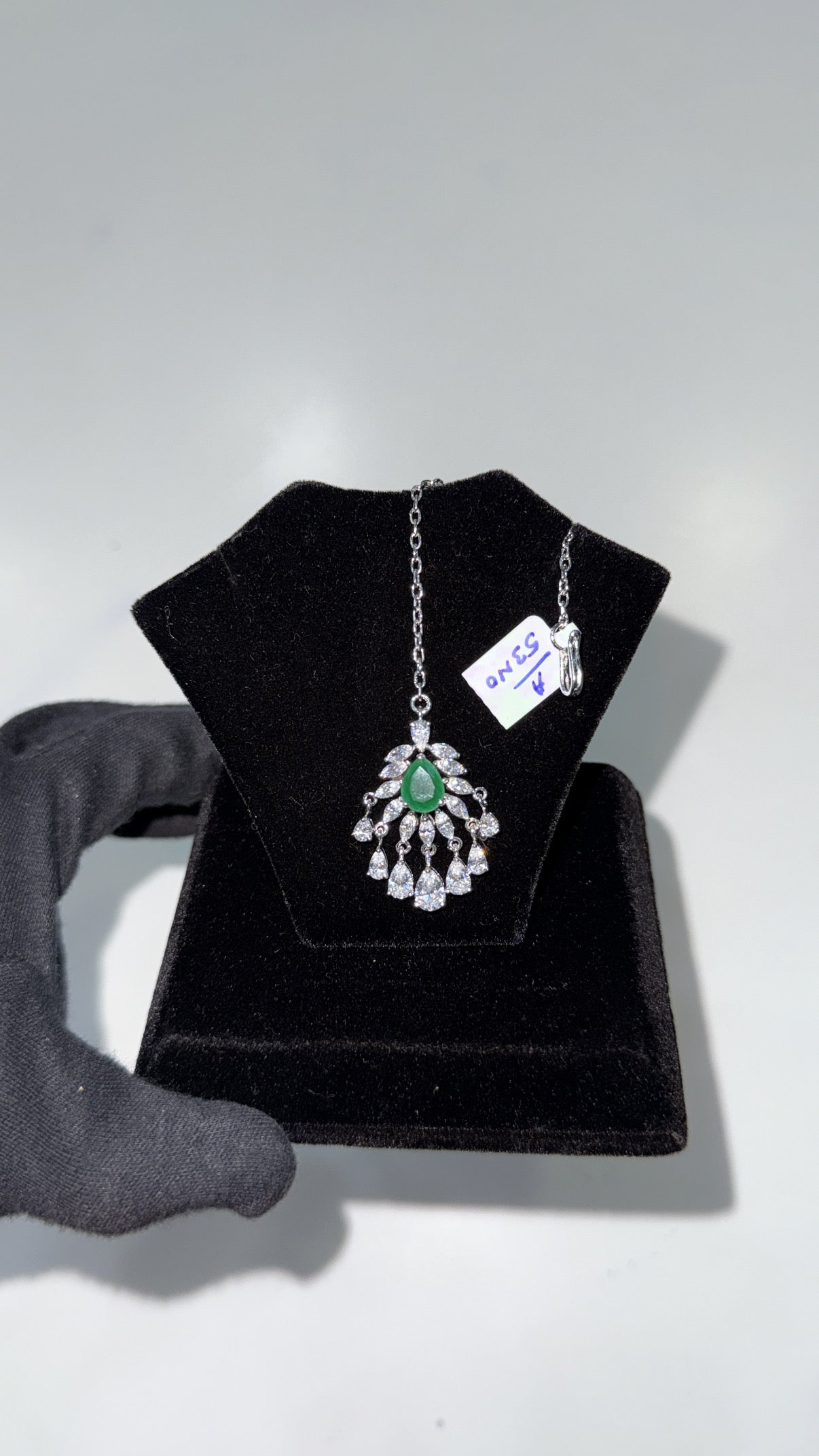 Zeenat Emerald Maangtika is designed to sit so gracefully at the centre, adding instant charm to your look. Featuring a rich emerald-green drop framed with delicate, shimmering stones, the design flows beautifully with tiny danglers that move ever so slightly β€” subtle, elegant, and oh-so-pretty.